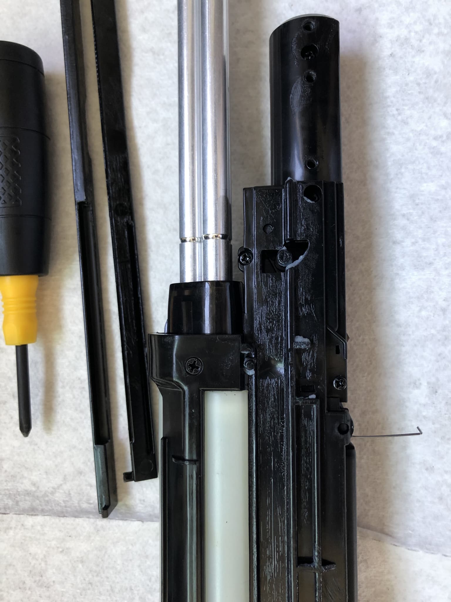エアーコッキングだけあって、ビス類がかなり多い。細かい分解手順は宮川ゴムのYouTubeをチェック!動画と作業を並行してやるとやりやすいよ!